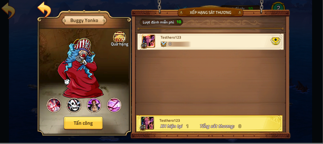 - Mỗi ngày sẽ dựa theo sát thương cao nhất mà Thuyền Trưởng đã tấn công Boss Tứ Hoàng để sử dụng làm căn cứ xét điểm xếp hạng trên Bảng Xếp Hạng Sát Thương và cuối ngày sẽ tổng kết nhận quà. (Làm mới mỗi ngày và không cộng dồn).